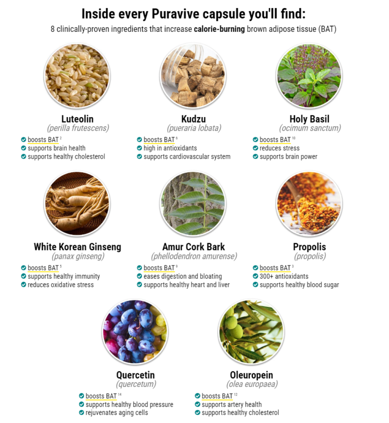 In essence, the Puravive weight management formula works by acting as a fat burner in your body. Some ingredients such as kudzu can boost brown adipose tissue (BAT). BAT or brown fat is a kind of fat tissue that is densely packed with mitochondria. Its function is to keep your body warm by burning glucose and fat.